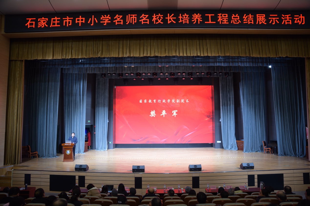 1月19日,“风华三载,致远未来——石家庄市中小学名师名校长培养工程总结展示活动”在石家庄市第二中学秋实剧院隆重举行。国家教育行政学院副院长樊平军、教师工作与研究部主任于维涛等出席活动,活动由石家庄市教育局党组成员、副局长熊萍主持。石家庄市各县(市、区)教育局分管负责同志、直属学校书记(校长)、“双名工程”培养对象代表等约500人共同见证三年育人成果。“总结展示活动”的举办标志着由我院承办的石家庄市“中小学名师名校长培养工程”(2022-2025)完成全部培养计划,圆满收官。