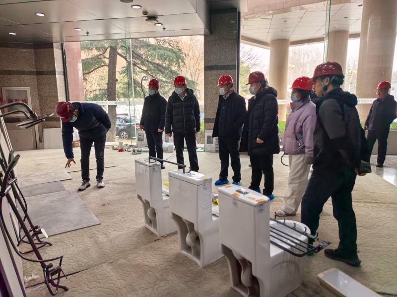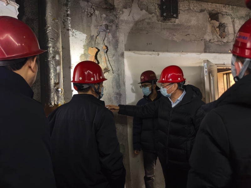 修购项目领导小组现场仔细察看了样板间、地下空间、综合管线更换、结构加固及外墙改造等具体工程施工进度情况。