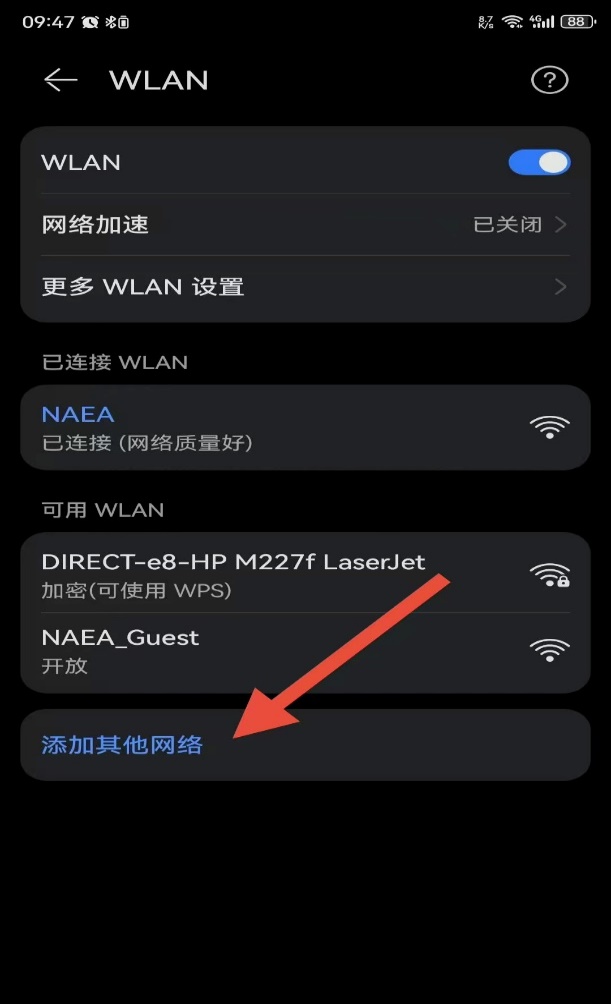 b)选择“添加网络”或“其他网络”;