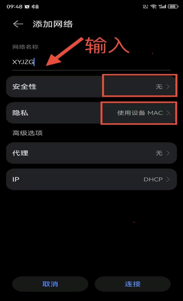 3、网络连接变更:升级后,校园无线网络将按照教育部安全保密要求隐藏SSID(网络名称),连接方式变更如下: