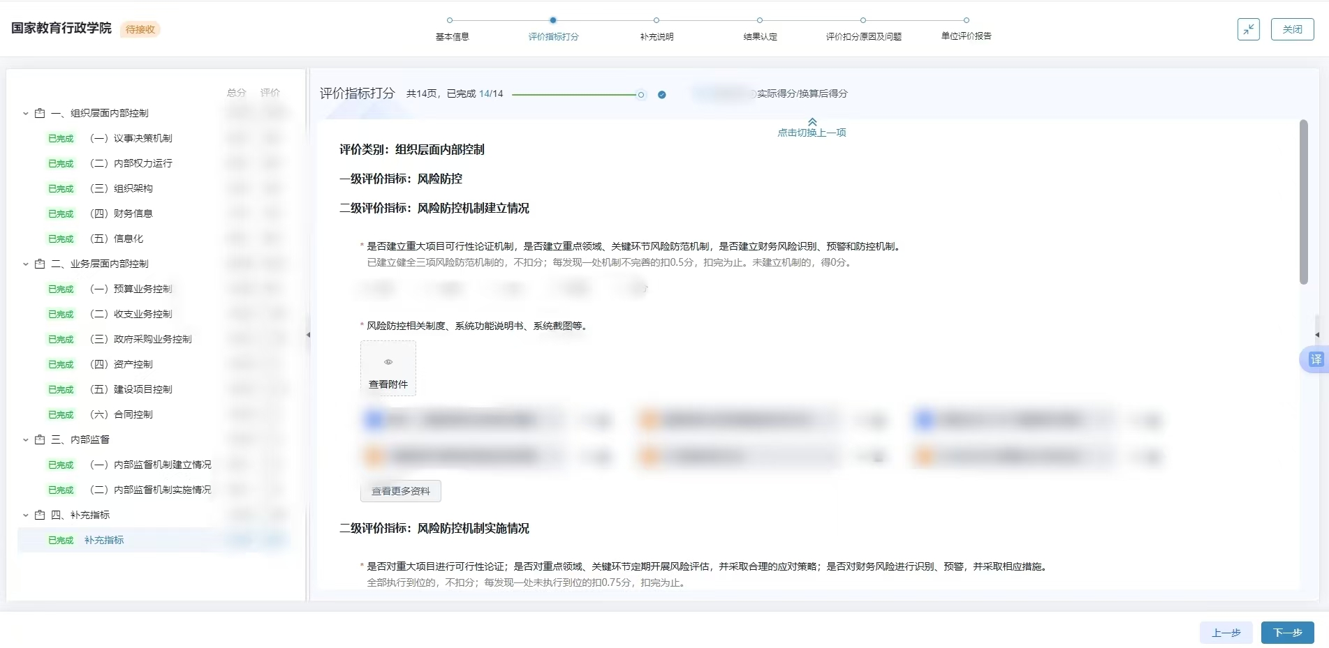 财政部内部控制评价系统部分截图