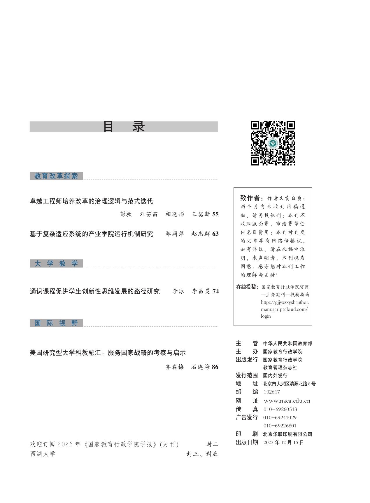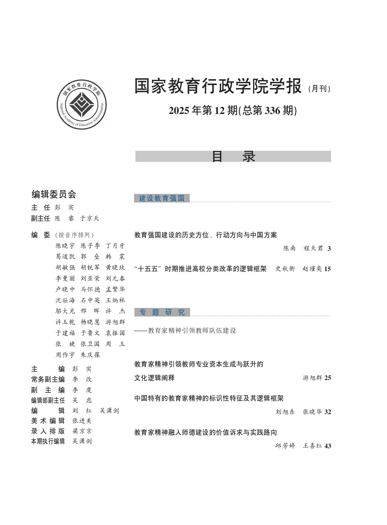 《国家教育行政学院学报》2025年第12期(总第336期)