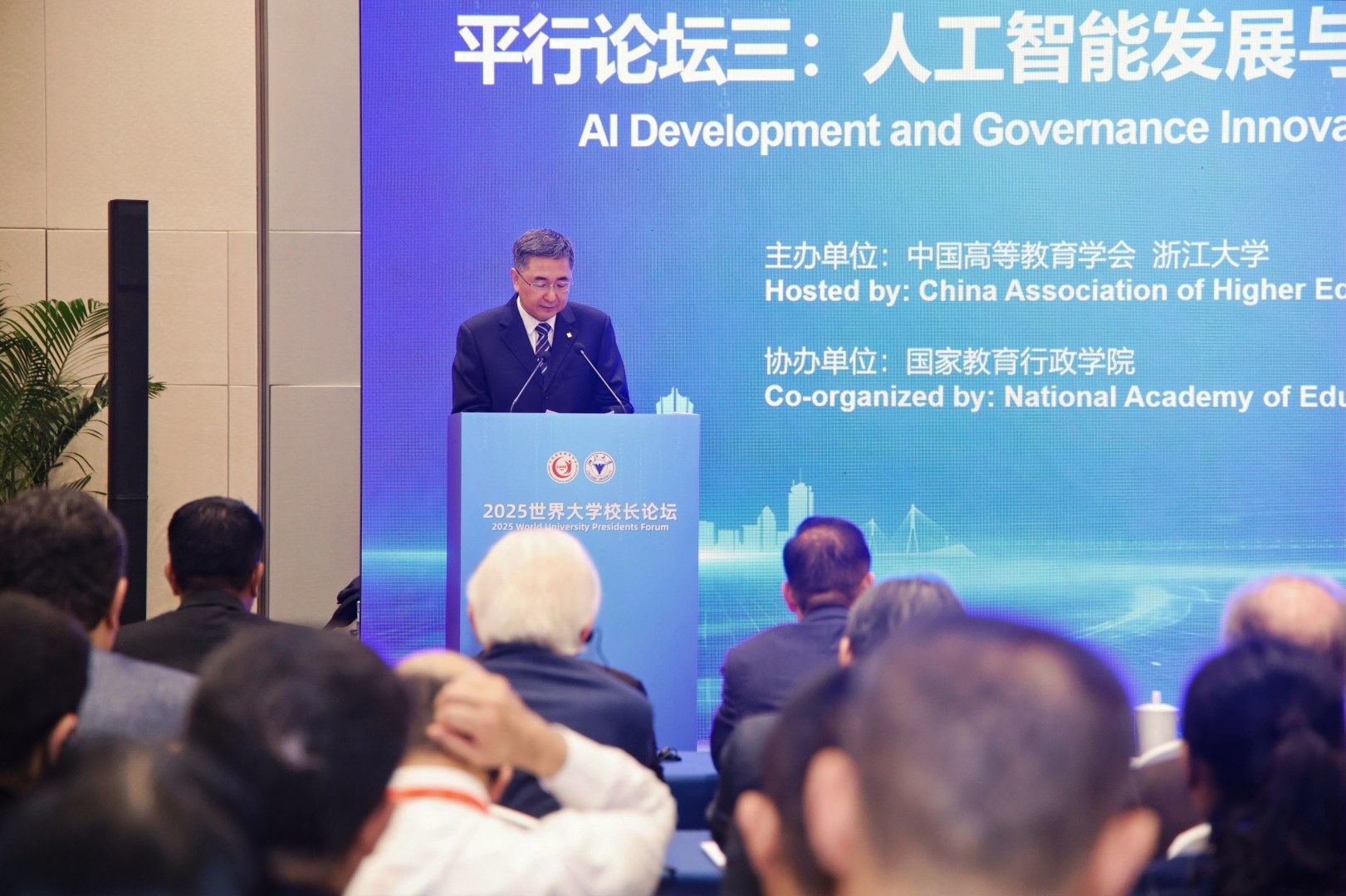 作为世界大学校长论坛的平行论坛之一,本次论坛以“人工智能发展与高等教育治理创新”为主题,旨在深入探讨人工智能时代高等教育治理变革与效能提升。来自国内外30余所高校的专家学者100余人参加论坛。(宣传中心)