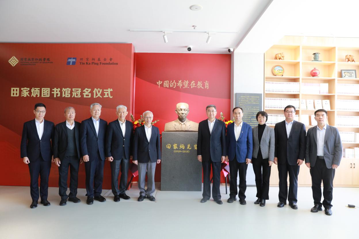 彭实对代表团一行表示热烈欢迎,对田家炳先生兴学重教的大爱情怀致以崇高敬意,对基金会长期关心教育系统干部教师培训、支持学院事业发展表示衷心感谢,并展望了未来合作前景。田荣先指出,国家教育行政学院是田家炳基金会不可或缺的合作伙伴和专业指导机构,希望双方合作能够切实促进教育系统干部教师培训质量持续提高,有效助力全国田家炳学校系统提升,共同传承田老“回馈社会、贡献国家”的宏志,延续先生“中国的希望在教育”的信念。双方共同见证了田家炳图书馆冠名暨田家炳铜像揭幕仪式和全国田家炳学校助力计划——管理团队高级研修班(第三期)开班典礼,并就战略合作推进情况与下一步工作思路深入交换意见。