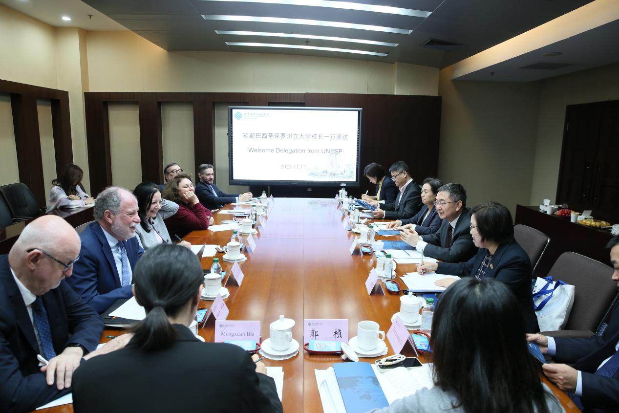 2025年11月17日,巴西圣保罗州立大学校长马伊莎·弗兰教授率团来院访问。学院党委书记、常务副院长彭实与代表团会谈,分管院领导陈丽萍陪同会谈,国际合作交流处及相关部门负责人参加会谈。