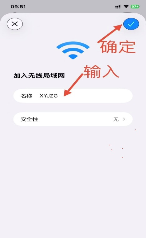 c)手动输入SSID名称:XYJZG;