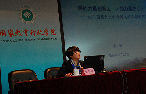 中青班学员、中国药科大学党委组织部部长李琳,作了“船的力量在帆上、人的力量在心上——以中国药科大学为例浅析人事管理”的主题发言。她认为,人事分配制度改革事关教职工的切身利益,应当让教职工充分参与,发挥“参与激励”的作用。她介绍了中国药科大学围绕转型发展,从教职工利益出发,建立以体现岗位绩效为核心的津贴制度。学校坚持“开门改革”、“放权改革”,充分相信依靠广大教职工和院级单位,做到改革过程、改革方案“全公开”,诉求表达渠道“全畅通”,院级单位“全松绑”,关注人心,凝聚智慧,服务一线,下移重心,构建校院两级绩效评价和管理体系,强化院部和教职工改革创新的主体意识。由于参与感、责任感、获得感的增强,教职工的积极性、主动性、创造性得到激发,进一步提高了办学活力。