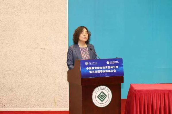 作为新一届理事长,侯慧君首先向中国教育学会、教育部教育督导局、各地教育督导部门及社会各界对教育督导分会换届工作的关心支持和精心指导表示感谢!本届督导分会秘书处挂靠在国家教育行政学院,意味着学院又增添了一个服务教育决策咨询和督导实践的平台和阵地,深感责任重大,使命光荣。她从“把握形势,明确教育督导分会的使命担当”、 “把握方向,明确教育督导分会的目标任务”、“把握规矩,明确教育督导分会的发展要求”等三个方面宣讲了新一届理事会工作的指导思想、目标任务和原则要求,表示尽职尽责做好教育督导分会的各项工作,倾力打造新时代专业社团的靓丽品牌,为高质量教育体系建设做出应有贡献!