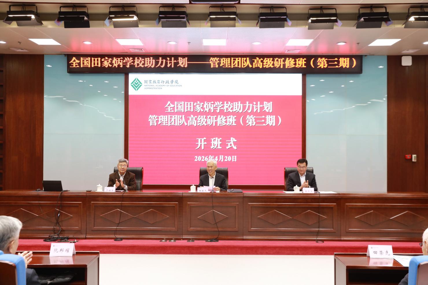 彭实对代表团一行表示热烈欢迎,对田家炳先生兴学重教的大爱情怀致以崇高敬意,对基金会长期关心教育系统干部教师培训、支持学院事业发展表示衷心感谢,并展望了未来合作前景。田荣先指出,国家教育行政学院是田家炳基金会不可或缺的合作伙伴和专业指导机构,希望双方合作能够切实促进教育系统干部教师培训质量持续提高,有效助力全国田家炳学校系统提升,共同传承田老“回馈社会、贡献国家”的宏志,延续先生“中国的希望在教育”的信念。双方共同见证了田家炳图书馆冠名暨田家炳铜像揭幕仪式和全国田家炳学校助力计划——管理团队高级研修班(第三期)开班典礼,并就战略合作推进情况与下一步工作思路深入交换意见。