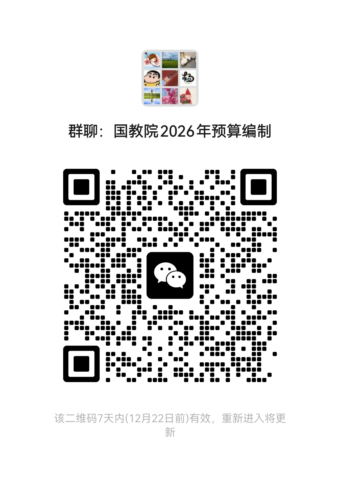 1.上报部门经办人员姓名。请各部门经办人员于20251217日前,扫描下页二维码进入“国教院2026年预算编制”微信群,财务处将在微信群下发操作流程,并为经办人开通网上预算申报权限。